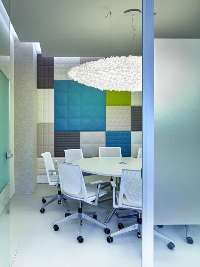 員工區是開放式的設計,高級主管人員、專業部門、會計和IT部門則設有專門的辦公室。在工業廠房時期遺留下的大型外窗為室內帶來充足的光照。協作區和會議室的墻面采用毛氈吸音板裝飾,營造舒適的會議談話氛圍。
