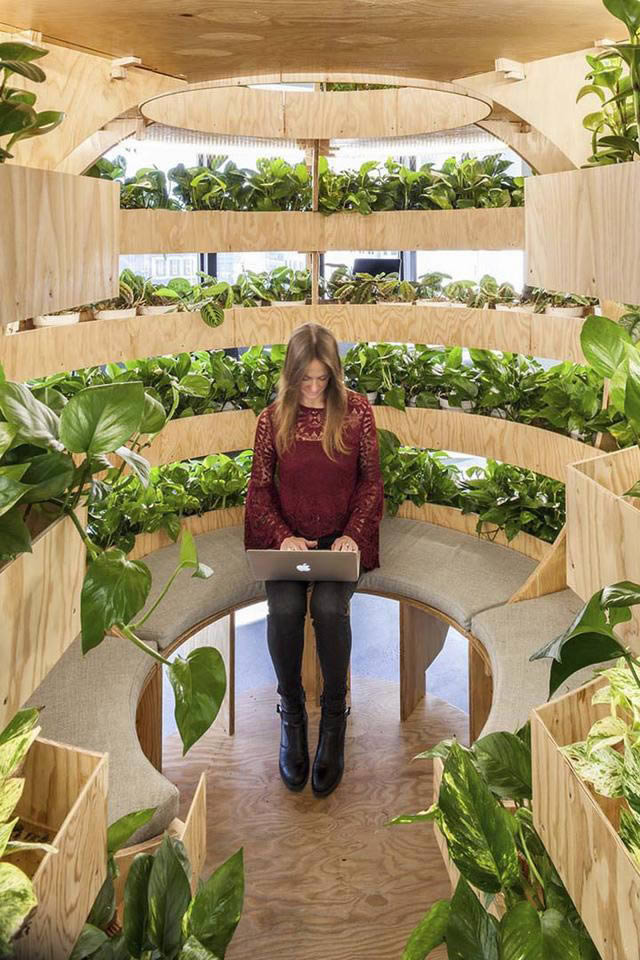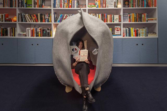 工作上總會遇到各種各樣不開心的事,不是嗎?因此設計師將一間舊的文檔室改造成圖書冥想室,并配以超級有趣的神器:HUSH Pod繭式豆莢,一個人躲在里面可以發泄郁悶或憤怒情緒。