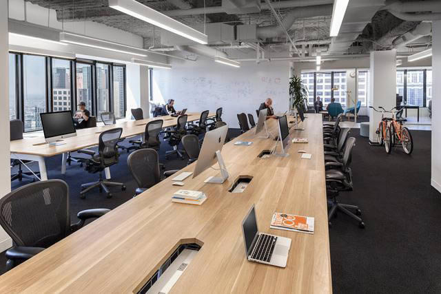 創始人的堅定信念注定公司會實現超高速增長,因此設計需要最大化空間利用率,以靈活應對未來增長需求。并與家具商合作定制設計工作臺,挑選符合設計意圖的現代而有趣的辦公家具。長條形辦公桌是個很不錯的選擇,可隨意增加或減少人員。