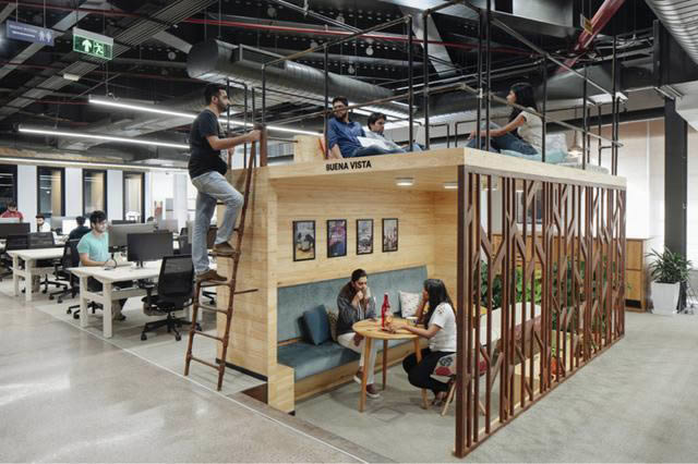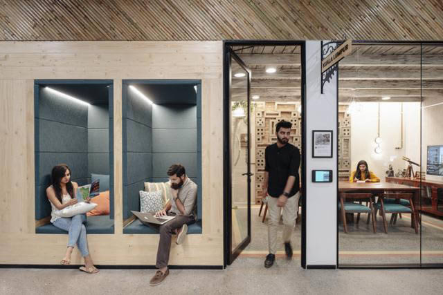 3、培養(yǎng)社區(qū)意識。以象征性的空間去表達(dá)特定功能非常重要,但確保員工之間的互動和建立社區(qū)意識也是非常必要的。設(shè)計團隊以印度當(dāng)?shù)貥O具特色的文化去塑造特定的功能空間,比如起源于印度的Chai奶茶文化而設(shè)計的工作吧、壁龕式入墻座位等。